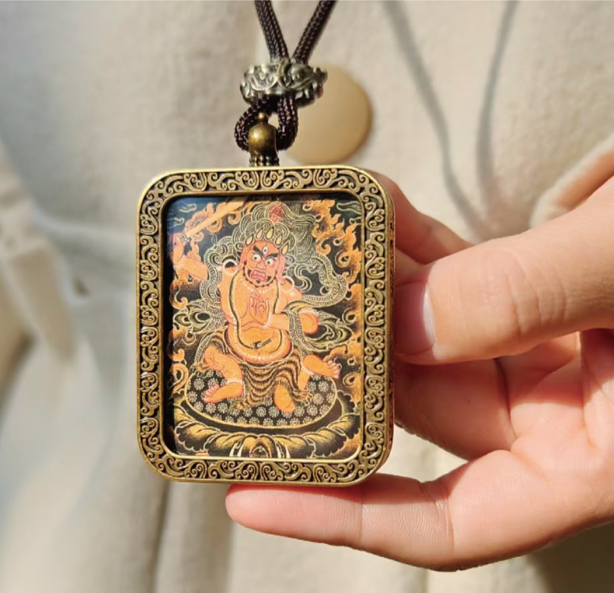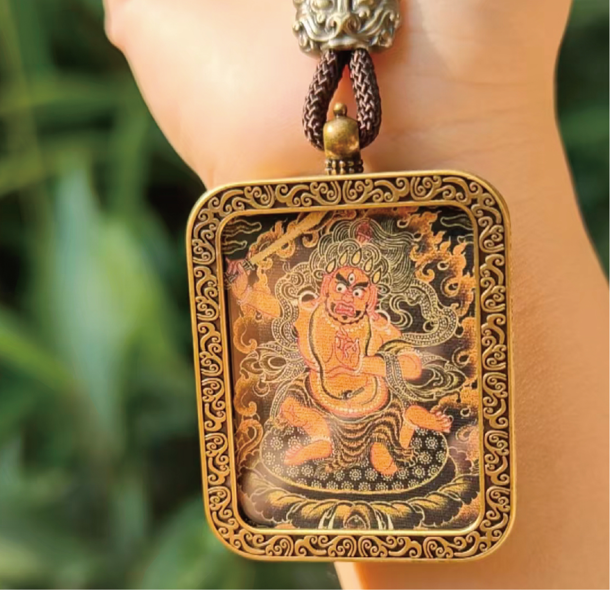 このペンダントに描かれた不動尊は、伝統的なチベット唐カーペットのスタイルを採用し、怒りの表情で邪悪を鎮め、宝剣を持って煩悩を斬り捨てる姿を精緻に再現。厄除け・仕事運アップ・試験合格・災難回避を願う方に最適な守護アミュレットです。