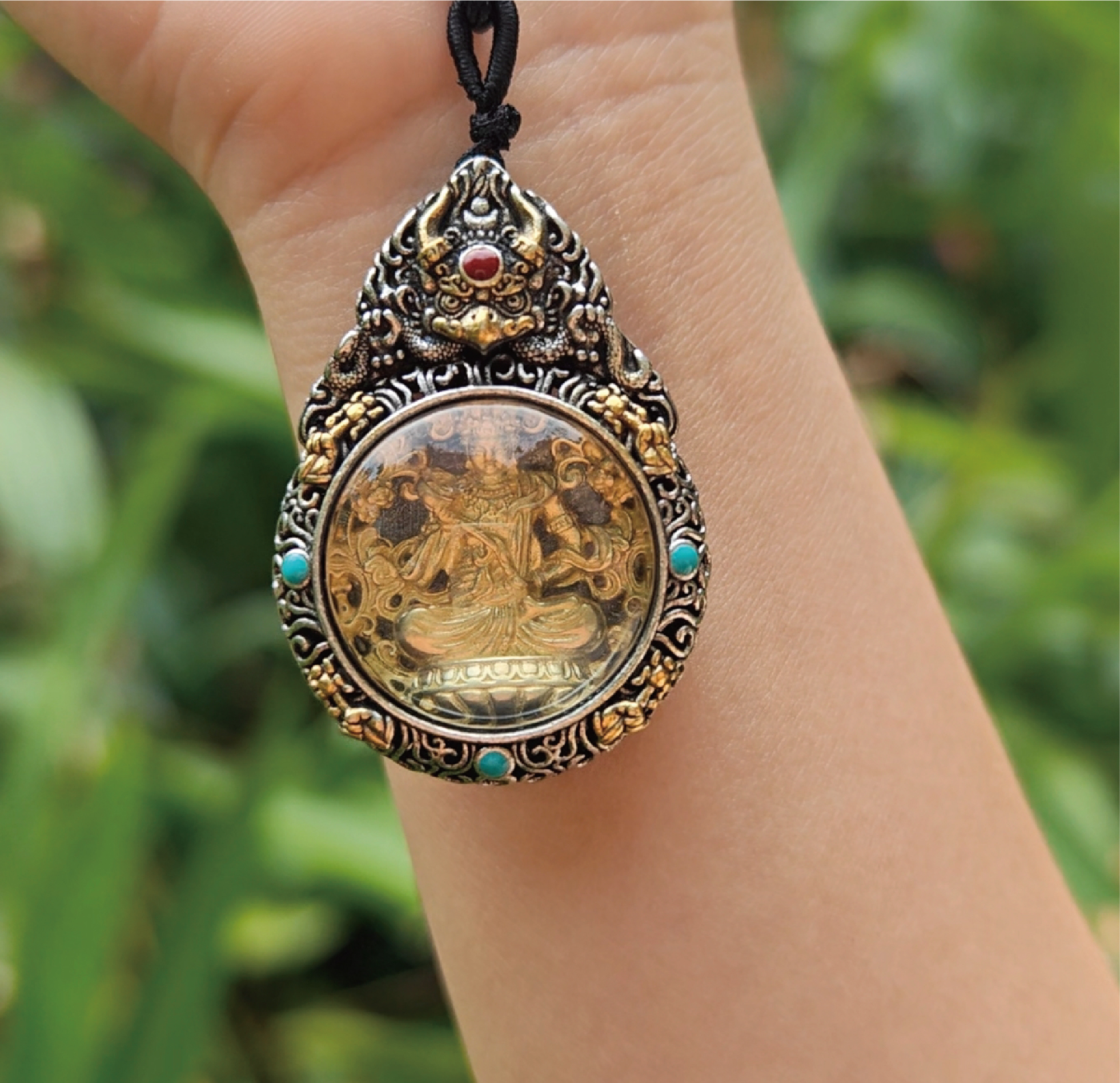 このタンカペンダントが、日々の装いのアクセントであると同時に、雪域高原からの護りと祝福を届ける一品となります。ご自身用はもちろん、大切な方への贈り物や、修行の道を歩む方の随身仏としてもおすすめです。