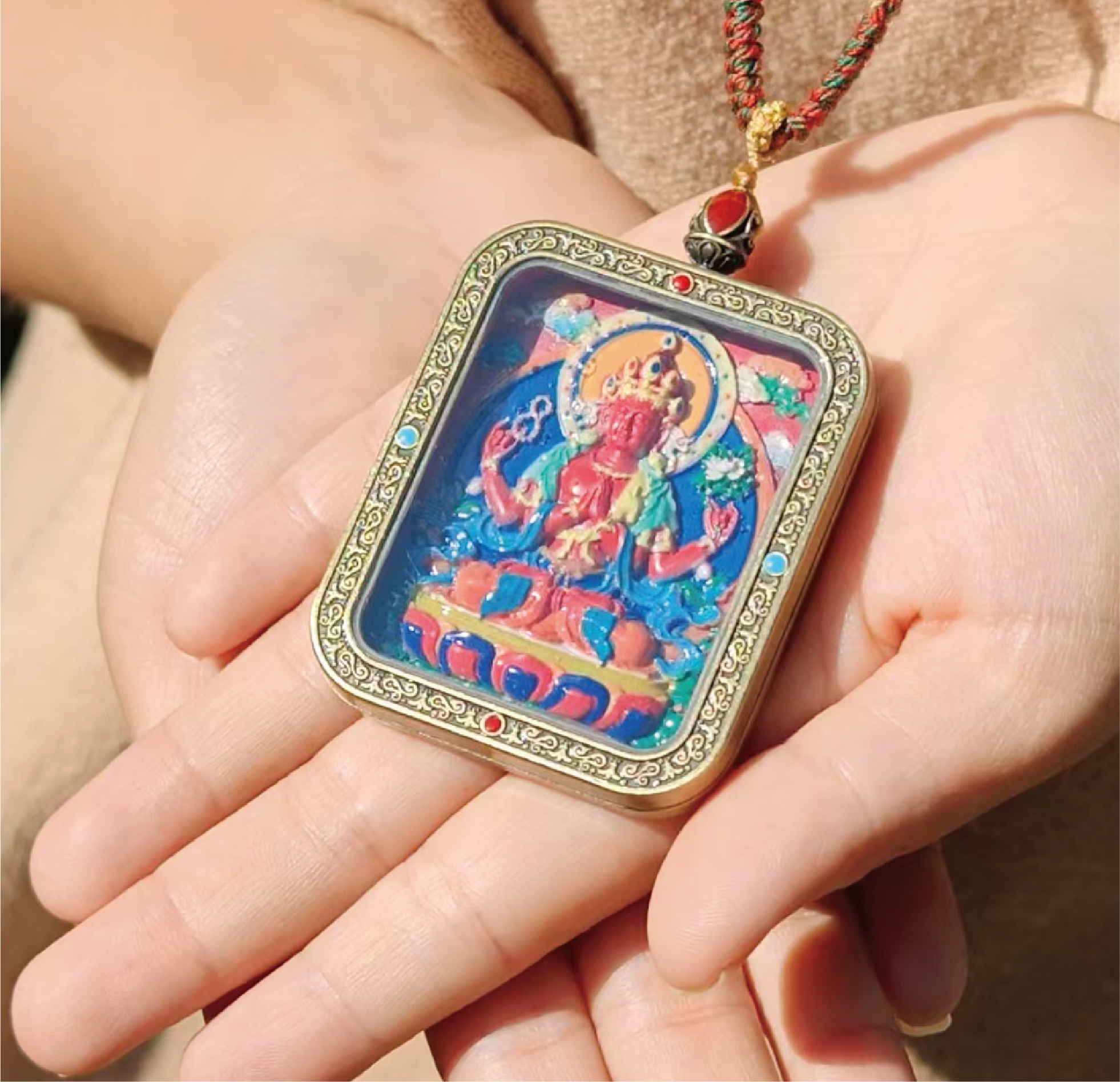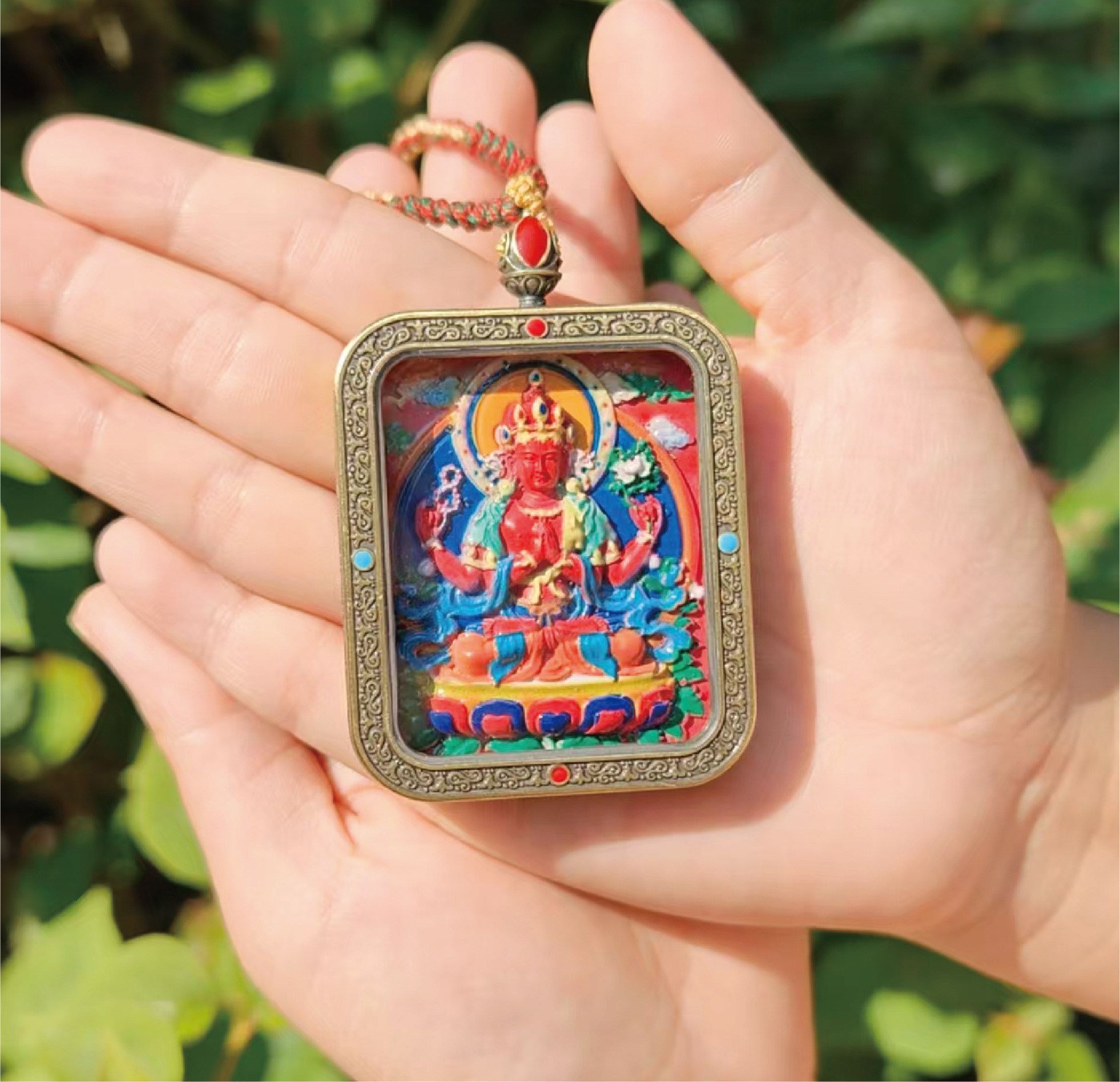 このペンダントは、チベットのタンカ(唐卡)の度量儀軌に厳密に基づき、千手観音の主尊である寂静で慈悲深いお姿を精巧に表現しています。宝冠を戴き、中央の両手は合掌し、その他の手にはさまざまな法具が円光のように取り囲んでいます。平安吉祥、消災解难、智慧増長、身心自在を祈願する方々にとって、殊勝な依り代となるでしょう。