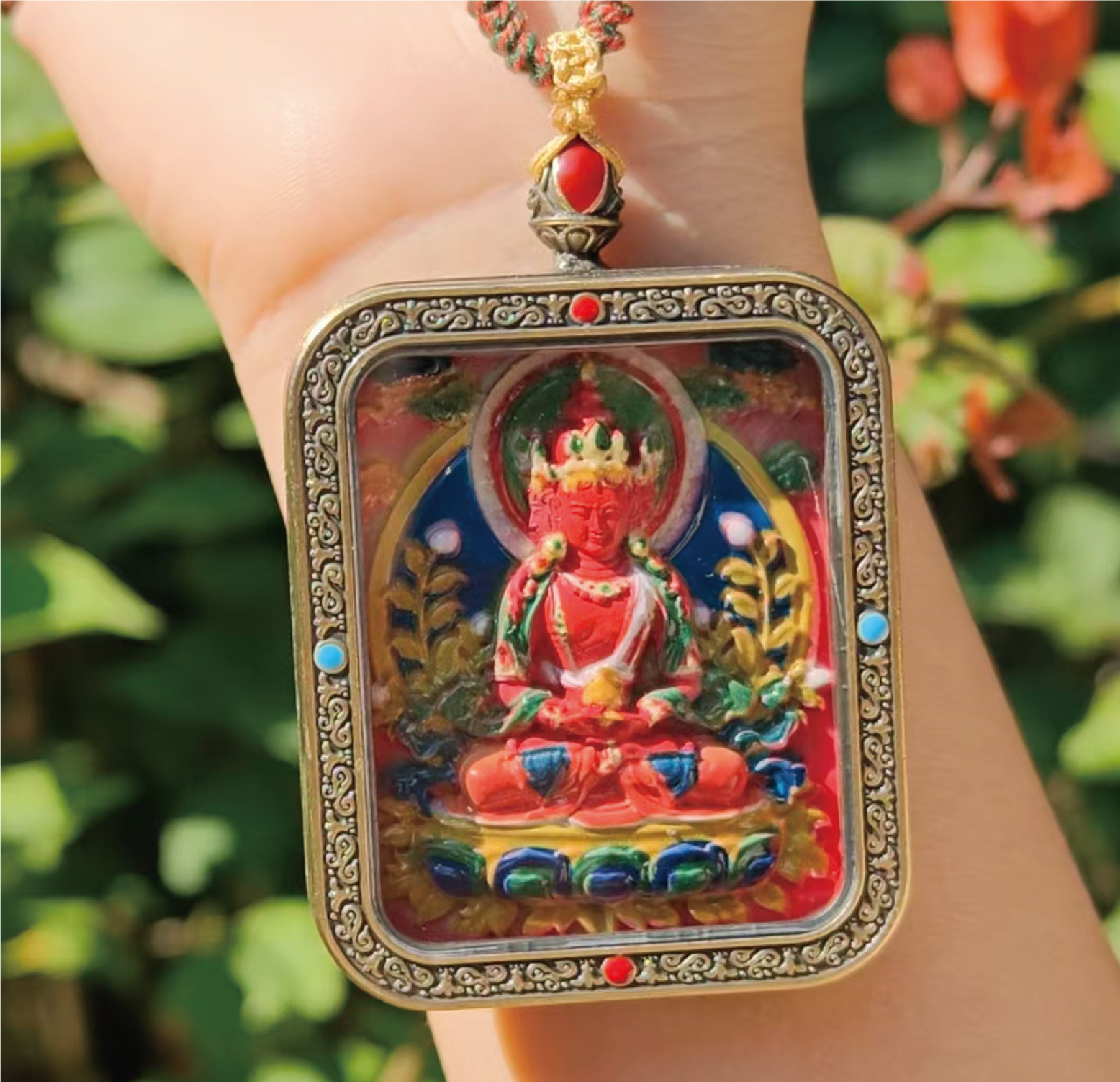 このペンダントは、チベットのタンカ(唐卡)の度量儀軌に厳格に基づき、大日如来の荘厳で平和なお姿を精巧に表現しています。智慧の光を放つそのお姿は、宇宙の真理そのものを象徴し、心の平安、智慧の開花、真理との調和を祈願する方々にとって、殊勝な依り代となるでしょう。